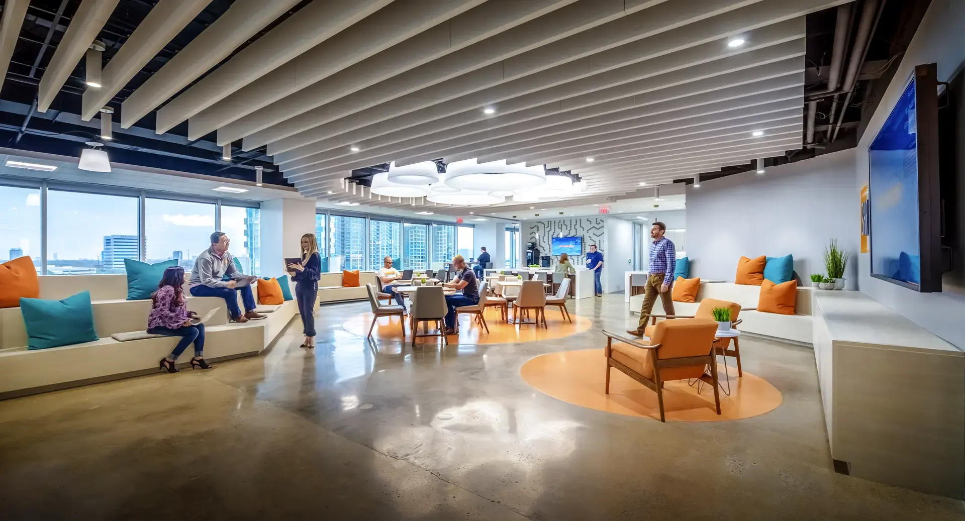 - Áreas abiertas y versátiles, que pueden transformarse según el tipo de actividad: desde zonas de enfoque profundo hasta ágoras de colaboración o espacios para eventos after-office.